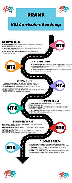 The Drama curriculum at HCCS is designed to give all pupils the opportunity to explore and develop key skills as theatrical performers as well as the spiritual, moral, social and cultural aspects of education whereby students appreciate various social issues, events and other cultures. The students study using a variety of different topics alongside performance techniques and skills. Pupils undertake projects which involve individual, group and whole class outcomes creating well rounded individuals with transferable skills for both their whole curriculum learning and beyond.​​ ​ The curriculum in years 7 and 8 is designed to introduce and develop the students' understanding of the key performance elements, their ability to perform using a variety of characterisation techniques, their ability to analyse and evaluate such techniques in action as well as developing their group work, leadership and communication skills. This is achieved through following schemes of work which progressively develop their skills to that by the end of year 9 they have had a rounded education in Drama which will have developed their understanding of Drama and performance processes and SMSC aspects, while also providing the grounding for further study of the subject at KS4. The curriculum in year 9 continues to build from year 7 and year 8 and is designed to develop the students' understanding of the key performance elements, their ability to perform using a variety of characterisation techniques, their ability to analyse and evaluate such techniques in action as well as developing their group work, leadership and communication skills. This is achieved through following schemes of work which progressively develop their skills to that by the end of year 9 they have had a rounded education in Drama which will have developed their understanding of Drama and performance processes and SMSC aspects, while also providing the grounding for further study of the subject at KS4.